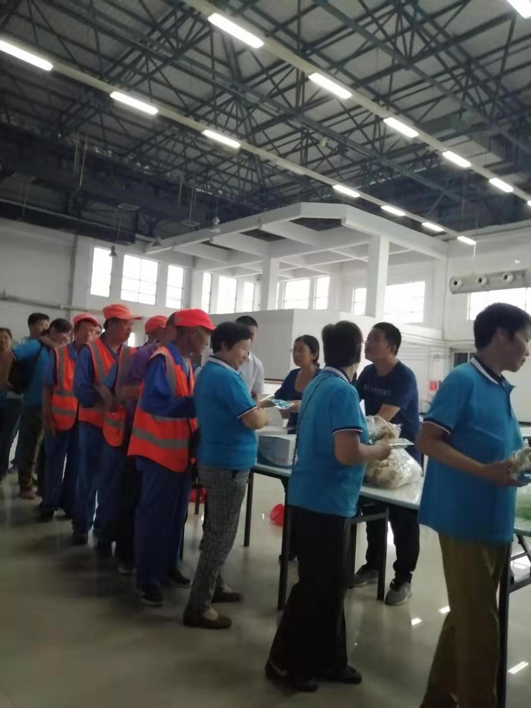在富士康餐廳二樓,利用工作人員切西瓜的間隙,公司總經(jīng)理程晉軍作了簡(jiǎn)短的講話。他說(shuō),前一段時(shí)間,公司召開(kāi)了“安康杯”勞動(dòng)競(jìng)賽動(dòng)員大會(huì),大家要提高安全意識(shí),始終把安全工作放在心上。他囑托大家在夏季工作中一定要注意防暑,感謝大家在酷暑下依舊兢兢業(yè)業(yè)奮斗在各自的工作崗位上。工會(huì)主席崔偉也作了簡(jiǎn)要發(fā)言,他說(shuō),今年是潔霸公司成立二十周年,希望大家在工作中繼續(xù)發(fā)揚(yáng)潔霸精神,積極樹(shù)立潔霸形象,為公司爭(zhēng)光。