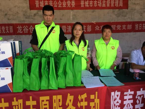 此次活動(dòng)由晉城市市場(chǎng)監(jiān)督管理局和市非公企業(yè)黨委領(lǐng)導(dǎo)帶隊(duì),非公黨委下屬的潔霸清潔、神利電器、隆泰實(shí)業(yè)、龍谷倉(cāng)等九個(gè)支部的黨員志愿者30余人參加,活動(dòng)旨在關(guān)愛(ài)弱勢(shì)群體,提供志愿服務(wù),弘揚(yáng)黨員志愿者精神,切實(shí)發(fā)揮文明單位的引領(lǐng)示范作用,送文化和健康下鄉(xiāng),助力晉城市扶貧攻堅(jiān)行動(dòng)。