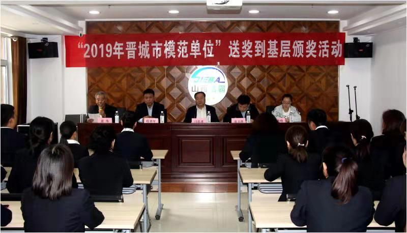 10月11日上午,晉城市總工會(huì)副調(diào)研員刁忠孝、商貿(mào)工會(huì)主席張玉濤、商貿(mào)工會(huì)干事李艷艷一行蒞臨公司舉行“2019年晉城市模范單位”送獎(jiǎng)到基層頒獎(jiǎng)活動(dòng),向公司榮獲“晉城市模范單位”表示祝賀,公司黨支部書記、總經(jīng)理程晉軍、公司副總經(jīng)理史志霞、公司原黨支部書記李山虎以及公司部分員工代表參加頒獎(jiǎng)活動(dòng)。公司工會(huì)主席崔偉主持了頒獎(jiǎng)儀式。