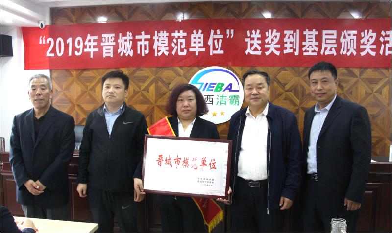 公司副總經(jīng)理史志霞首先介紹了公司的基本情況。隨后市總工會(huì)商貿(mào)工會(huì)主席張玉濤宣讀了晉城市潔霸清潔公司榮獲“2019年晉城市模范單位”批復(fù)表彰文件,市總工會(huì)副調(diào)研員刁忠孝向公司副總經(jīng)理史志霞授帶頒獎(jiǎng),并頒發(fā)了獲獎(jiǎng)榮譽(yù)證書。