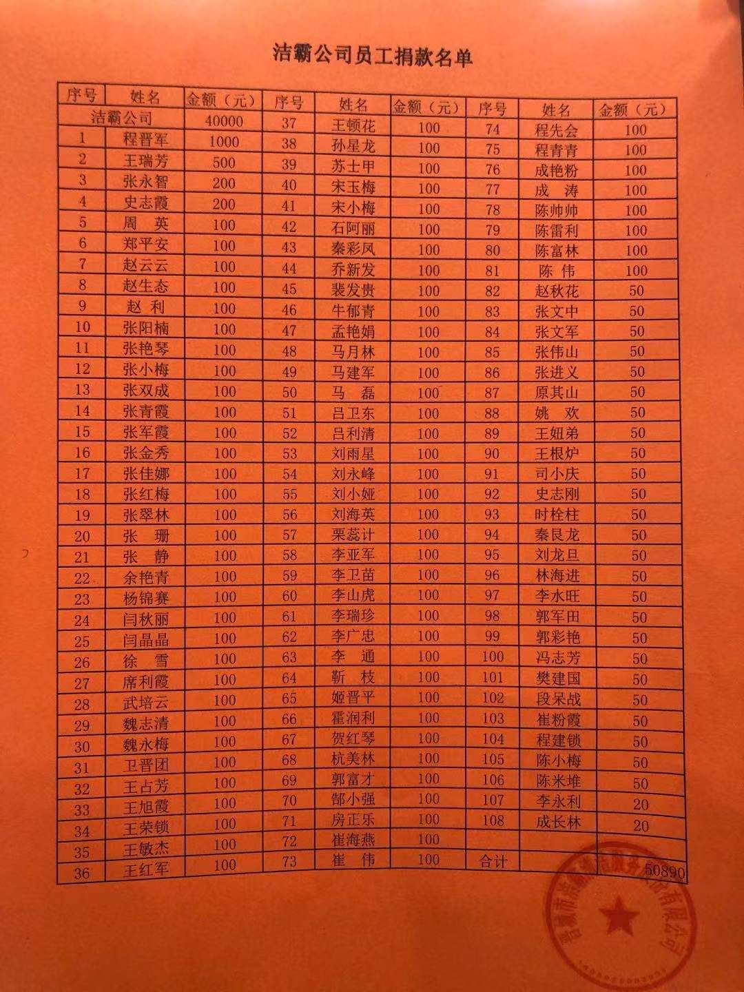 為避免疫情期間大規(guī)模聚集,公司捐款活動采取微信轉(zhuǎn)賬形式進行,僅僅一天多時間,共募集善款一百余筆,累計金額10890元。加之公司捐助的40000元,共計50890元,F(xiàn)已統(tǒng)一轉(zhuǎn)入晉城市紅十字會賬戶,定向捐助晉城市第二人民醫(yī)院用于疫情防控工作。