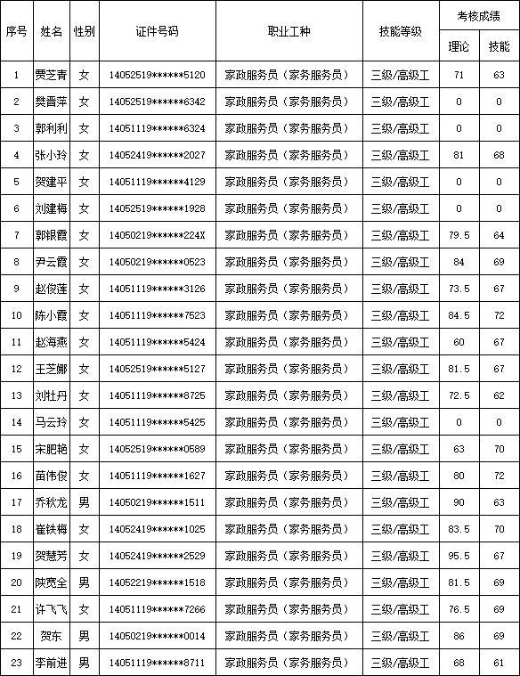 2025年8月30日第1批家政服務員(家務服務員)高級